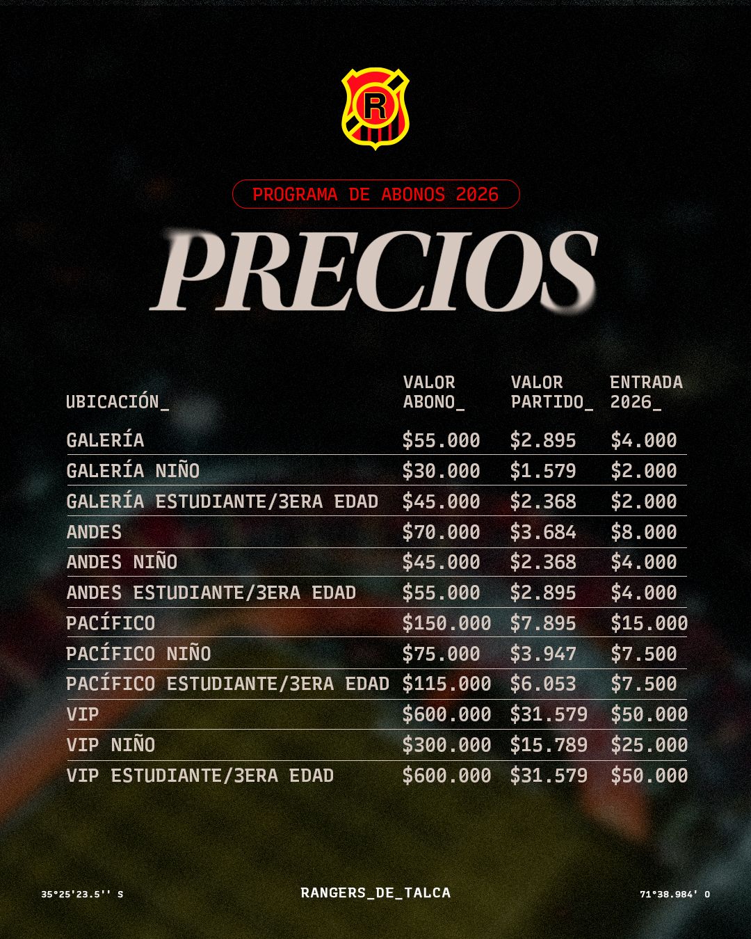 Con el desafío de retornar a la Primera División como gran objetivo, Rangers de Talca dio inicio a su campaña de abonos para la temporada 2026, realizando un llamado a su hinchada a ser protagonista de una “nueva era” marcada por la unidad y el compromiso con el equipo.