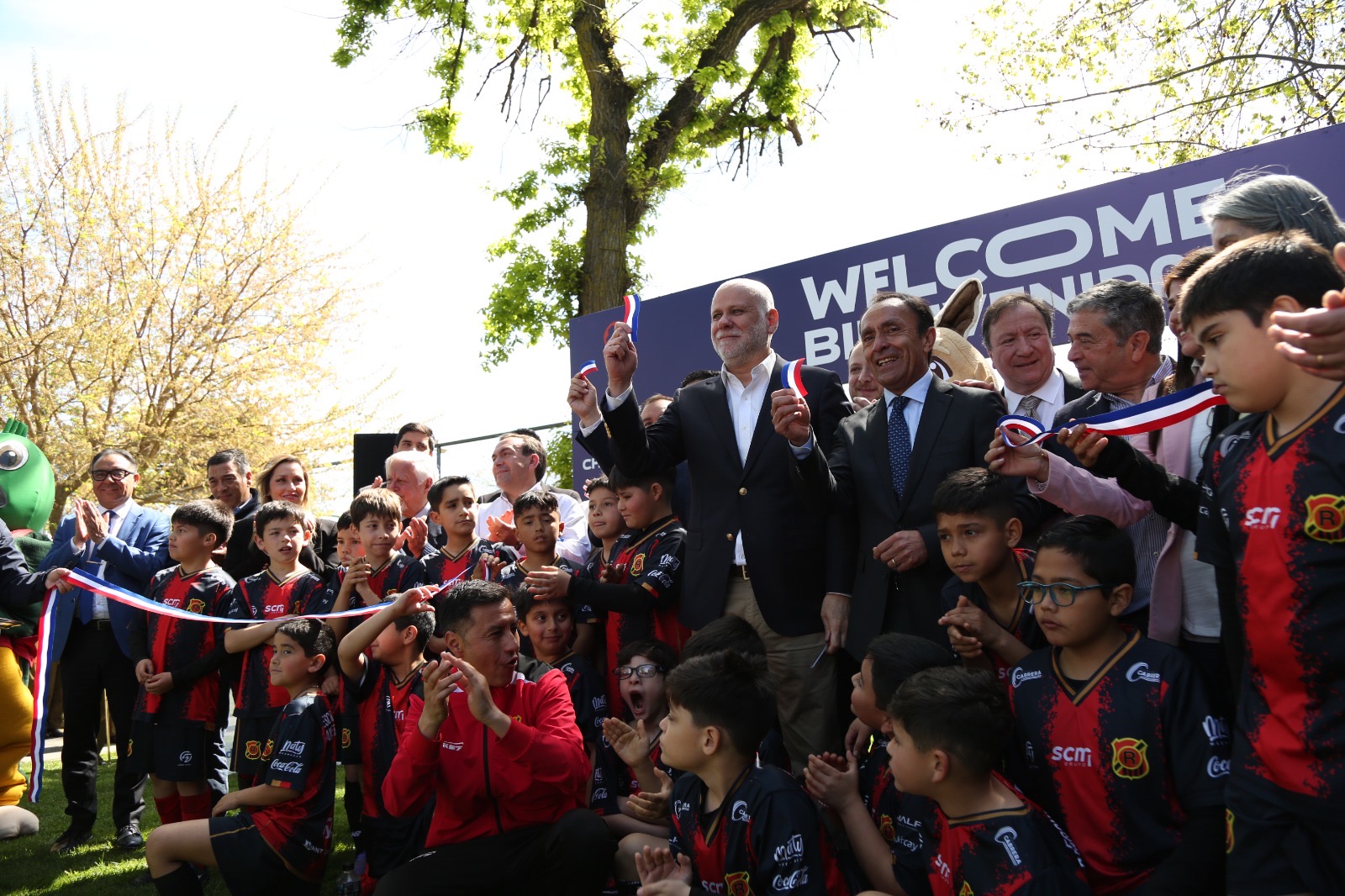 En la oportunidad también marcaron presencia menores de la escuela de fútbol de Rangers de Talca, en la actividad realizada en los jardines del IND, debido a que como explicó el Ministro del Deporte, Jaime Pizarro, “la FIFA tiene compromisos con marcas que no pueden ser exhibidas hasta el momento de la realización de los partidos. Eso ocurre en todos los estadios remodelados para este mundial, incluyendo el Nacional en Santiago”.