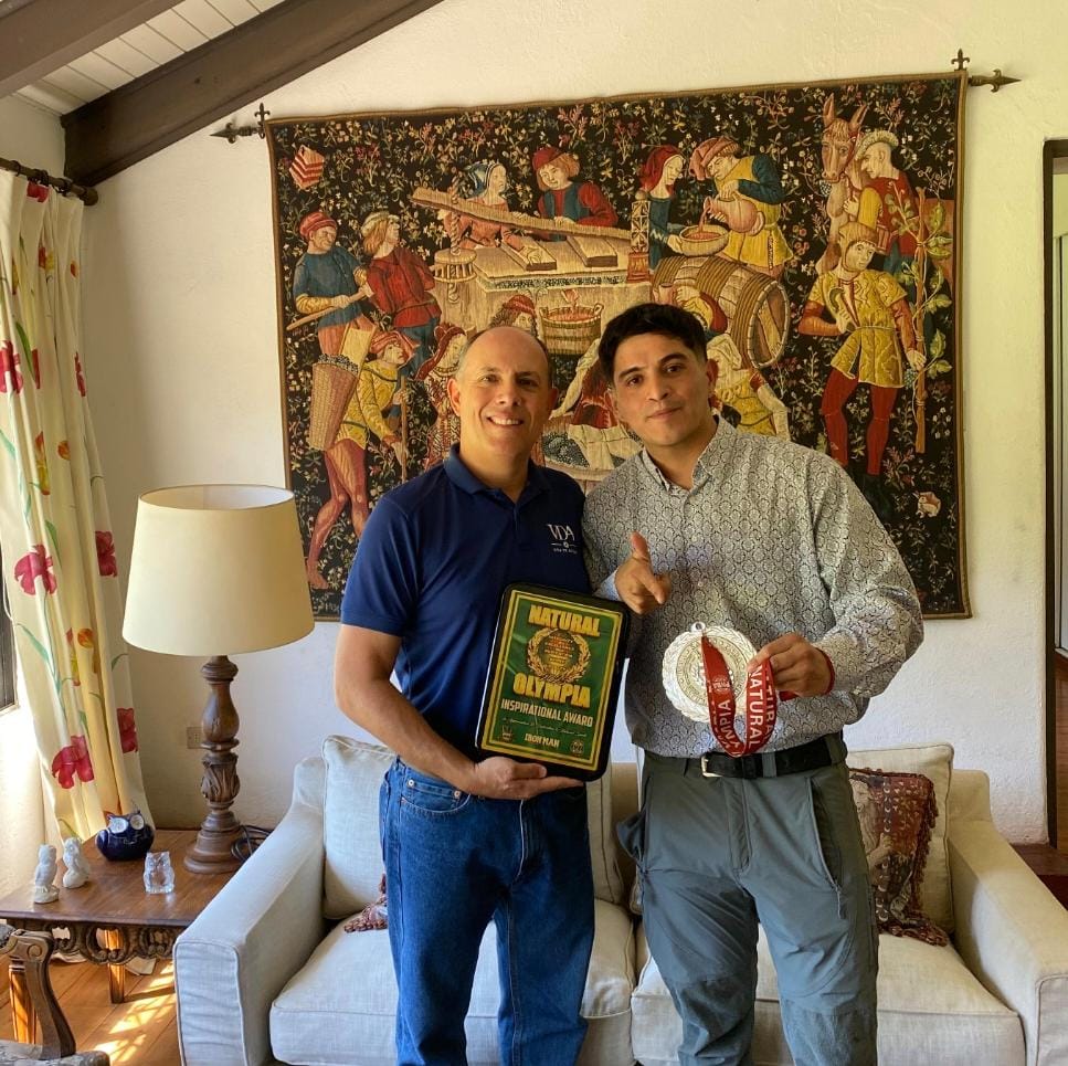 Pero su paso por Estados Unidos no solo dejó logros deportivos. Andrés fue distinguido con el Inspirational Award, reconocimiento entregado por INBA Global e IronMan Magazine, que destaca su historia de superación: una transformación física de 121 a 77,2 kilos y 11 medallas internacionales obtenidas en poco más de un año de competencia.